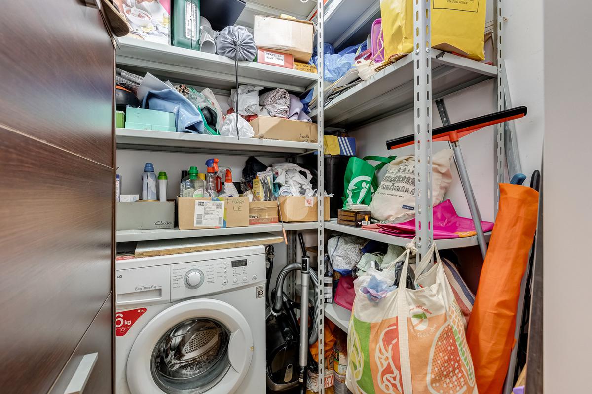 ampio salone con angolo cottura, due camere da letto, di cui una con bagno en suite e un secondo bagno, entrambi finestrati, comodo ripostiglio e balcone.